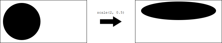 The following code doubles the horizontal size of an object drawn on the canvas and halves its vertical size: