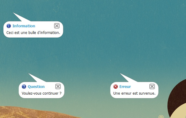 Une durée d'affichage égale à -1 implique que la bulle ne se fermera pas automatiquement. L'utilisateur devra, alors, appuyer sur le bouton de fermeture.