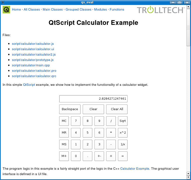 Voic un exemple qui montre comment utiliser un simple .ui et un script pour intégrer une calculette dans une page web afficher avec QWebKit.